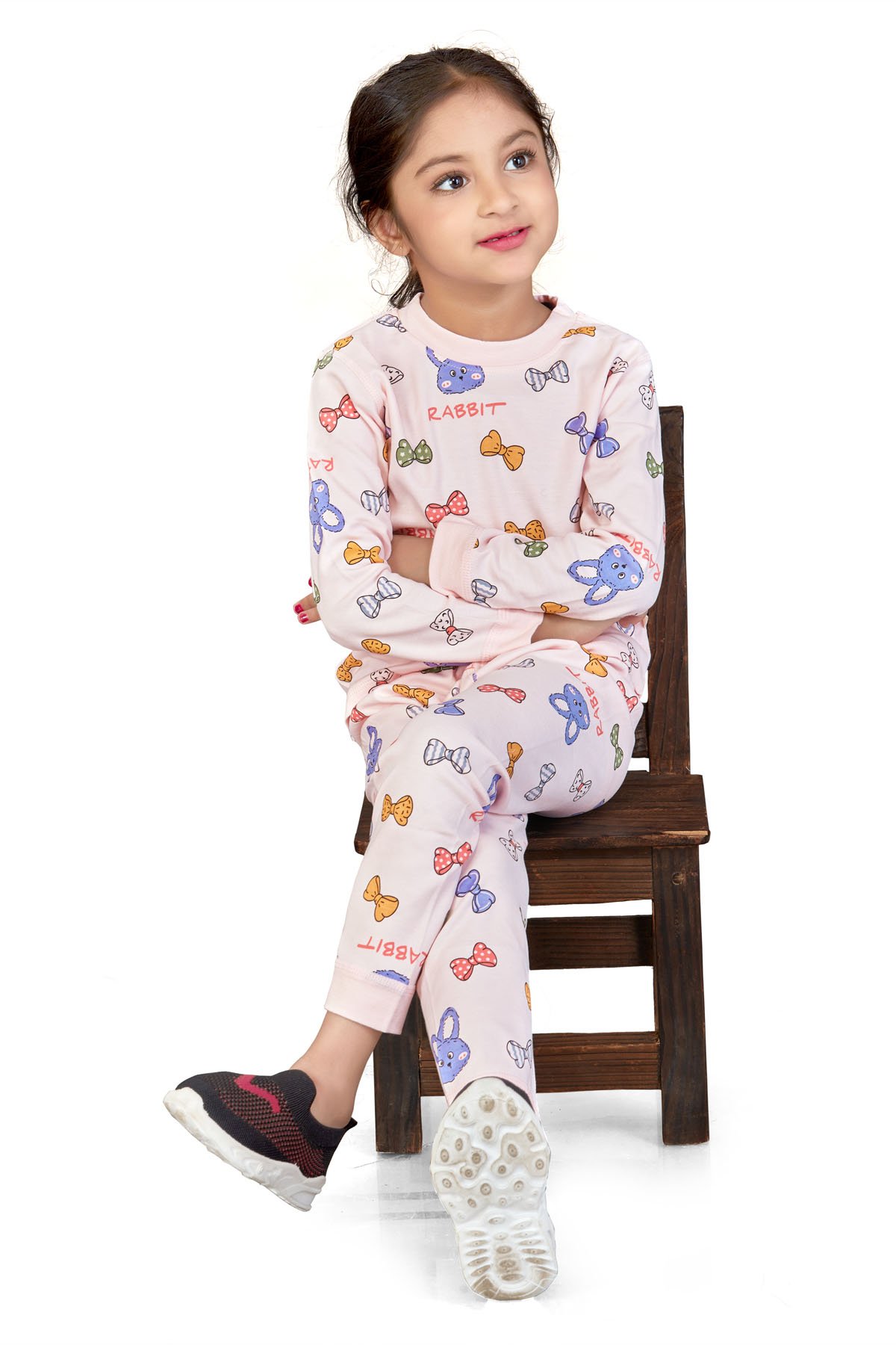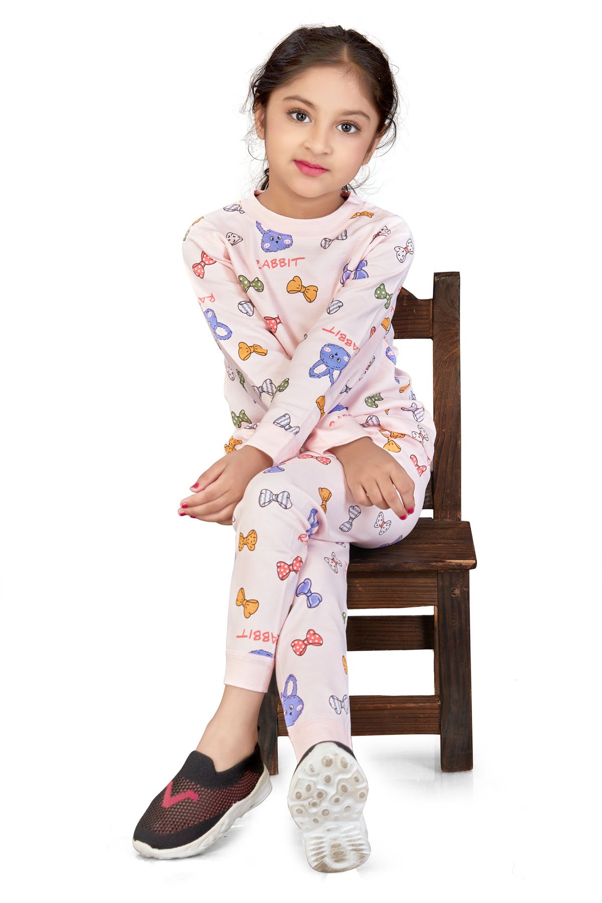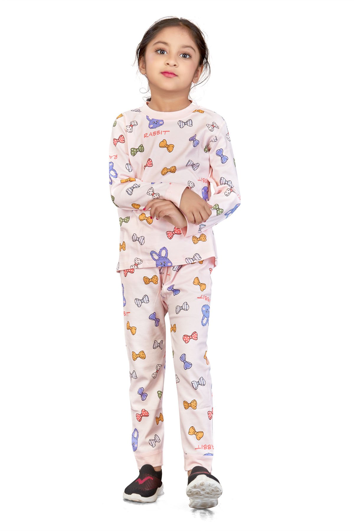 Peach Bow Tie Print Girls Night Suit